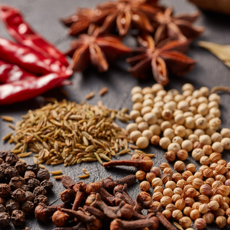 Whole spices are the unground, natural forms of aromatic seeds, barks, roots, or fruits that add rich flavor, color, and aroma to a variety of dishes. They are valued not only for their culinary uses but also for their health benefits and preservative properties. Common whole spices include black pepper, cumin seeds, coriander seeds, cloves, cardamom, cinnamon sticks, bay leaves, and mustard seeds. Unlike ground spices, whole spices retain their essential oils longer, ensuring a fresher and more intense flavor when used in cooking. They are widely used in Indian, Middle Eastern, and Asian cuisines to enhance both taste and fragrance in food preparations.